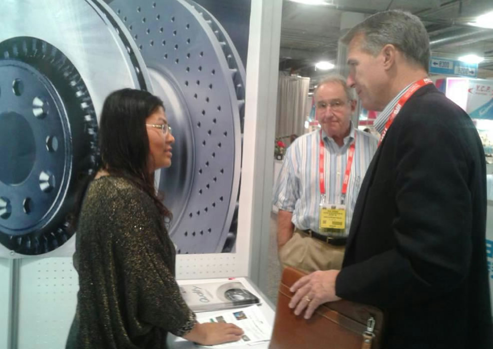 萊州魯源代表浩信集團(tuán)參加了此次盛會(huì),并取得了重大成果。在會(huì)展中接待美國(guó)、加拿大的新客戶20個(gè),其中為TAIILSA,CREDI,ZETA,R1 CONCEPTS,AUTO DEPOT, KANGRICH等國(guó)際知名進(jìn)口商。美國(guó)的老客戶——MATQALIIS前來拜訪,MAT客戶對(duì)十分滿意同魯源的合作,并對(duì)后續(xù)合作的具體事宜進(jìn)行了溝通,并表達(dá)了進(jìn)一步擴(kuò)大合作的意向,在圖紙確認(rèn)、提交方面達(dá)成了一致共識(shí)。QUALIS客戶對(duì)魯源的高碳盤產(chǎn)品作出了很高評(píng)價(jià),產(chǎn)品100%按時(shí)交付,無任何質(zhì)量索賠和反饋。將基于高碳盤合作的基礎(chǔ),在標(biāo)準(zhǔn)盤領(lǐng)域進(jìn)行新的合作。
