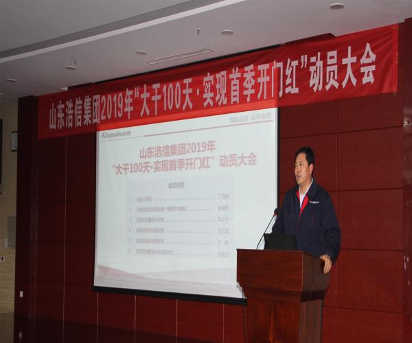 隨后,呂繼賢董事長分析和展望了2019年國內(nèi)外的經(jīng)濟(jì)形勢及行業(yè)前景,并就浩信集團(tuán)“大干100天·實現(xiàn)首季開門紅”工作提出了具體要求。