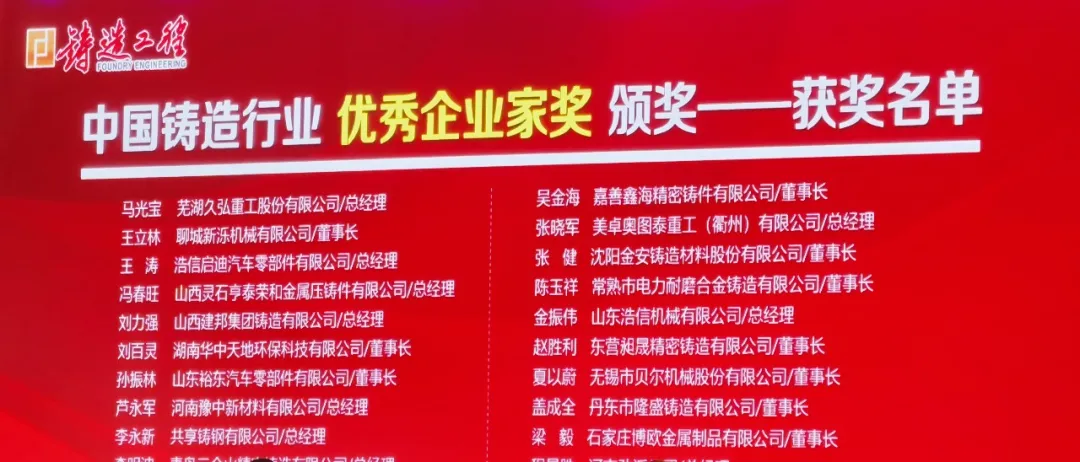 祝賀|金振偉、王濤榮獲“中國鑄造行業(yè)優(yōu)秀企業(yè)家”榮譽(yù)稱號